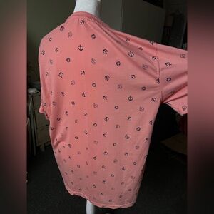 Pastel Orange & Black Sailor Anchor Print Short-Sleeve Casua Crewneck T-Shirt XL