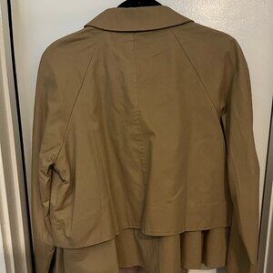 Modern Citizen Kirsten Swing Trench Jacket (Khaki) with raglan sleeves. Two functional pockets and two faux pockets. Button detail on sleeves. Fully lined. In excellent condition, but marked as good because there is a hole in one pocket (mendable). No signs of wear otherwise. Only worn a couple of times.