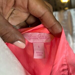 Chic coral blouse by Lilly Pulitzer. Sleeveless design with a stylish front detail. Ideal for casual wear.