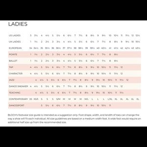 FIT: Start with street shoe size to 1/2 half size up. View the shoe fit chart for adult sizing. Pro dance shoe fitting is recommended. Children and tweens should start with 2.5 sizes above street size Please note - these run tight.