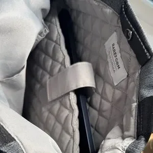 Removable shoulder strap for easy carrying and extra wide opening for easy packing. Inside, full quilted laptop sleeve that fits up to 13 inch Mac and easy access stash pockets.