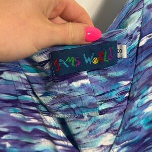Jams world Vintage Blue Patterned Back Tie midi Dress Size Small