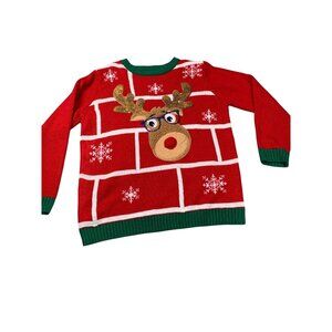 Christmas Reindeer Sweater Boys Large 10-12 Red Green Snowflake Holiday Time Cut