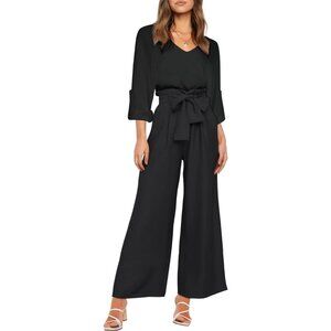 Features: Soft, lightweight polyester-spandex fabric with a comfortable elastic ruched waist, high elastic band, and a stylish belted detail on the cropped wide-leg pants. The top features a flattering V-neck in front and a U-neck in the back with long sleeves. This set is easy to pull on, versatile, and ideal for a relaxed yet put-together vibe.