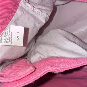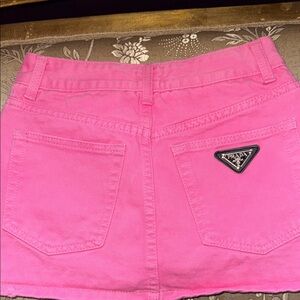 Stylish Prada mini skirt in vibrant pink with built in shorts. Features classic denim design with back pockets. Ideal for adding a pop of color to your wardrobe. Not authentic