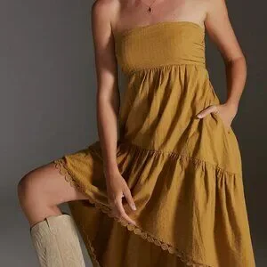 Anthropologie Maeve High-Low Strapless Midi Dress