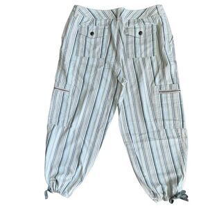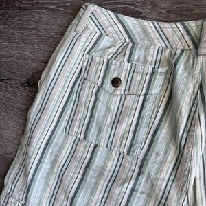 Bay Studio Khakis Green Striped Pants Capri Ankle Cotton Size 12