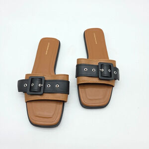 Anthropologie Buckle Slide Sandals Size 37 7 Slip On Brown Black Open Toe Anthro
