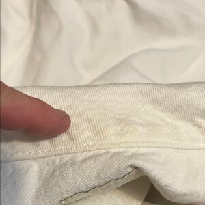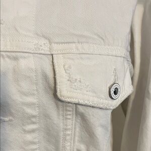 Favorite Daughter White Pockets Denim The Otto Jacket Boyfriend Distressed Jacket. Size XS, button closure, has pockets, please note; has staining around the collar.