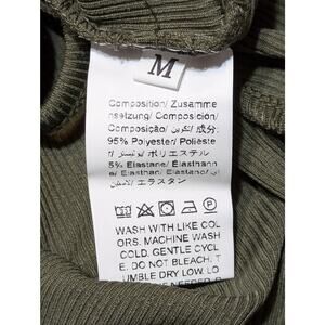 Army Green Bodysuit Womens Medium Ribbed Knit Ruched Stretchy Soft Tee One Piece