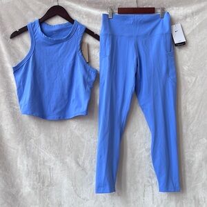 NEW Size Large Nike One Crop Tank High Rise 7/8 Leggings w/ Pockets Royal Pulse