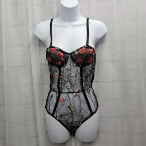 Unbranded Bodysuit Black Mesh Floral Fairy Sheer S