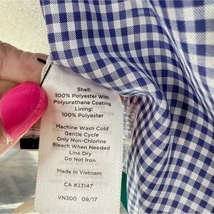 Talbots Classic Raincoat Green/Blue & White Gingham Button Up Hooded Jacket AA
