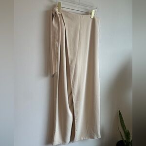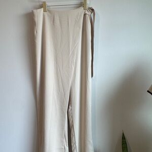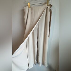 Elevate your wardrobe with these chic cream wide leg pants with wrap design. Quality design, fully lined and super stylish!