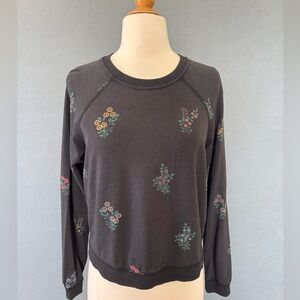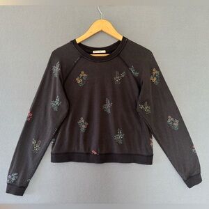 Marine Layer Floral Crewneck Sweatshirt Women’s Small Black Tencel Modal Soft