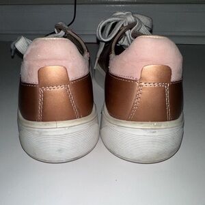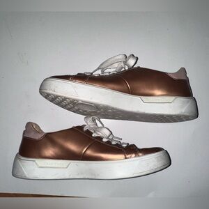 Chic bronze Street Tray W sneakers by Ecco. Features cream laces. Ideal for everyday style. These shoes are in excellent used condition. See pictures for smudges and wear marks.