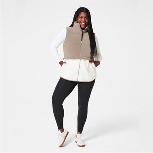 Spanx || Luxe Fleece Puffer Vest Convertible Two in One Driftwood Ivory XL