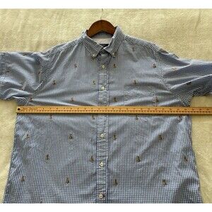 Cremieux Mens Shirt Large Button Gingham Blue White Dog Embroidered Novelty Preppy