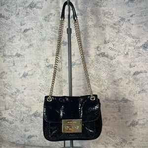 Stunning in a mix of croc-embossed leather and gold-tone hardware, this Michael Kors Sloan bag is shaped into a lovely silhouette.