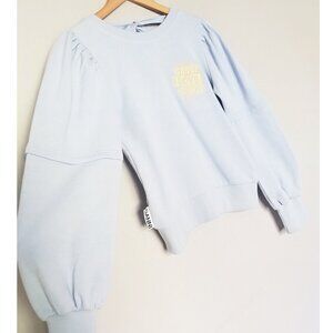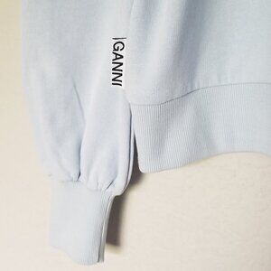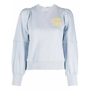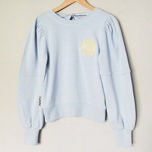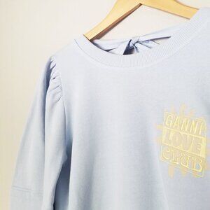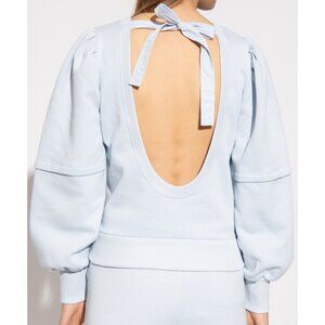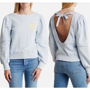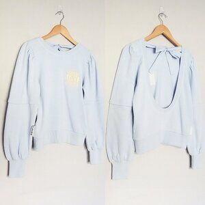 Ganni Isoli Bow Open Back Puff Sleeve Organic Cotton Sweatshirt XS Blue $215