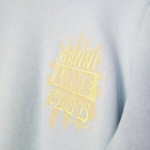 Continually working towards a more sustainable future, GANNI prides itself on monitoring its carbon footprint by using eco-conscious materials where possible. Crafted from soft organic cotton in a heather-blue hue, this Isoli open-back jumper is elevated by the 'GANNI LOVE CLUB' embroidery to the chest. Lantern-style balloon sleeves and gathered shoulders add a sense of playfulness to the knit.