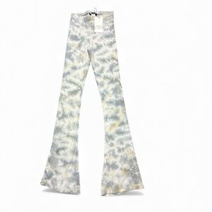 ZARA Women Elastic Waist Mid-Rise Knit Flared Pants medium Gray/Yellow Tie-Dye