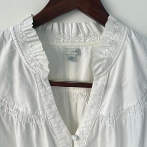 Odille White Cotton Ruffled V-Neck Button Front Short Sleeve Tunic Top Size 14