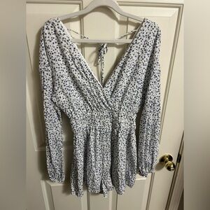 Altar’d State Blue & White Floral Deep V Romper Size Small