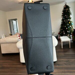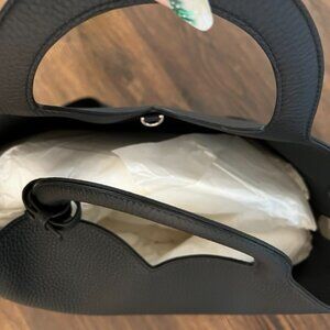 Beautiful piece. Measures 16" H x 14' W x 5.5" D. Inside has one zipper and one button pockets. New. Includes care card as well.