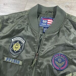 Vintage Phat Farm Bomber Jacket Mens Large Airborne Patches Dark Green Full Zip