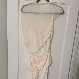Chic one shoulder design. Elegant draped detailing. Perfect for formal events. New with tags never worn!