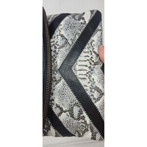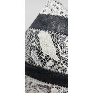 Helena De Natalio Leather Snake Foldover Clutch Bag Black White Chevron Pattern