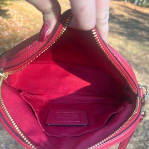 Coach Dome crossbody bag in bright cardinal pebble leather NWOT. No call outs. Comes with a Coach metal hangtag.