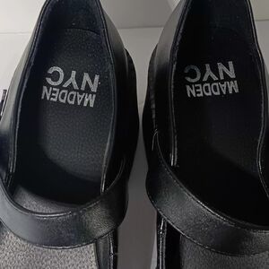 Elevate your style with these sleek black platform Mary Janes from Modern NYC. Perfect for any occasion, these shoes combine comfort with a bold look.