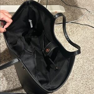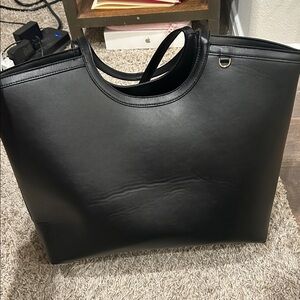 Never used. Sits comfortably on shoulder. Gold hardware. Can hold a laptop. This currently costs $35 at Target.