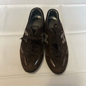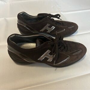 Hogan Brown Suede Leather Low Top Sneakers Shoes Women's Size US 6