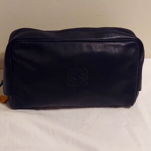 Authentic Loewe Large Anagram Black Leather Clutch Cosmetic Bag Vintage