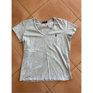 Polo Ralph Lauren, V-neck, fitted T-shirt, women’s medium, gray with navy horse