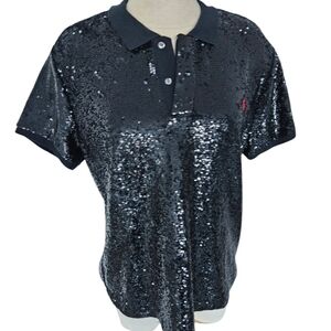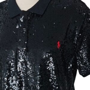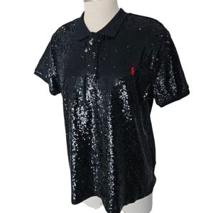 Ralph Lauren Black Sequin Short Sleeve Polo Women's