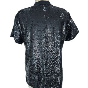 Ralph Lauren timeless and elegant black sequin polo. Short sleeves. Iconic Ralph Lauren style. Perfect for dinner or business work, excellent condition like new only one time been worn, measurements length 26" armpit to armpit 21" Retail price $ 298