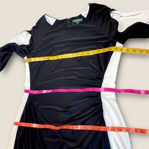 Lauren Ralph Lauren Split Sleeves Ruched Jersey Sheath Dress Size 16 Black White