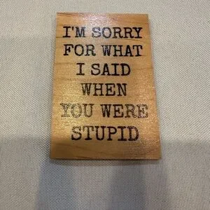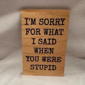 Wooden magnet featuring a funny quote. “I’m sorry for what I said when you were stupid”. Perfect for home decor or as a gift.