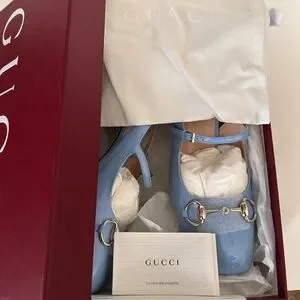 GUCCI Women's Horsebit Mary Jane Pumps Blue Patent Leather Size 8.5 NIB