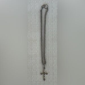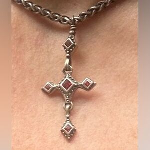 NWOT 3 Rexes Sterling Silver Rope Chain Garnet Cross Necklace