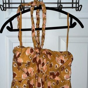 AERIE Brown and Pink Aztec Print Halter Maxi Dress XL NWT