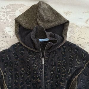 Blumarine Cashmere & Wool Full Zip Hooded Cardigan Textured Leopard Print M