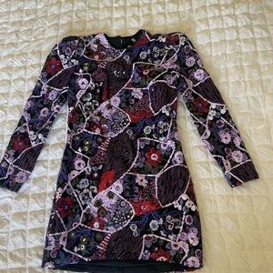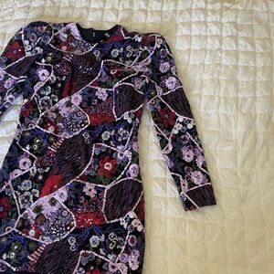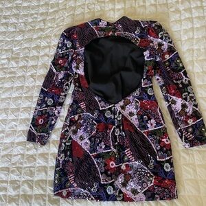 This striking bodycon dress features a bold skull pattern in purple and black, perfect for a night out. The long puff sleeves and mock neck add a touch of elegance, while the stretchy fabric ensures a flattering fit.