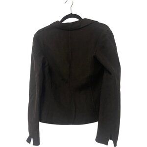 Material: Wool, Polyester Dry Clean Only Single Breasted Button Closure Long Sleeve Color: Brown Size: Small Jacket made of double wool blend fabric. Notched lapel collar. Button-up front. This garment is tighter than usual.. Chocolate brown