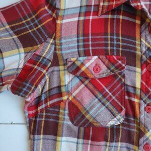Duluth Free Swingin Red Plaid Flannel Button Up Shirt Cabincore Workwear Small