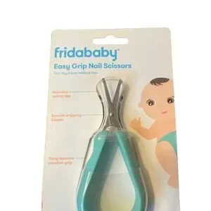 Fridababy Easy Grip Nail Scissors in teal. Nail Scissors take the fear out of cutting the tiniest talons. Safe,